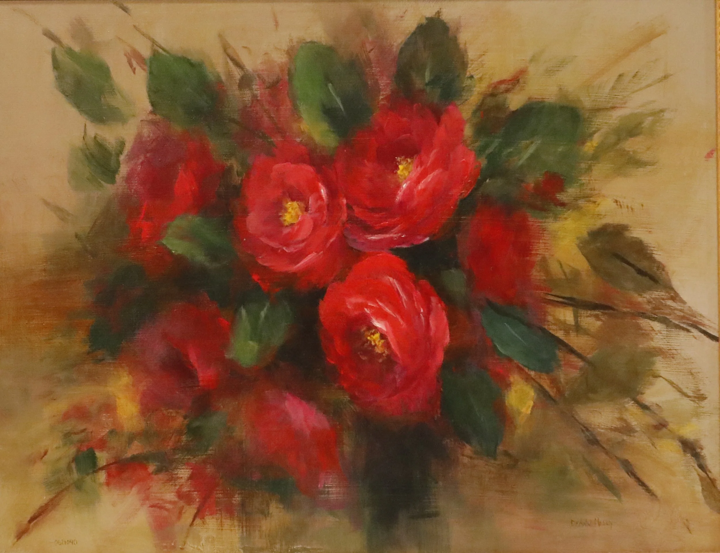 Elegant purple blossoms painted on a unique wood panel, where the richness of the blooms contrasts beautifully with the subtle wood grain beneath. Acrylic on wood.